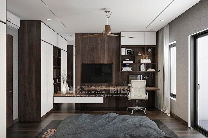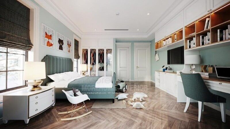 Bàn học trang trí tối giản nhưng vẫn đảm bảo công năng mang lại vẻ độc đáo cho phòng ngủ.