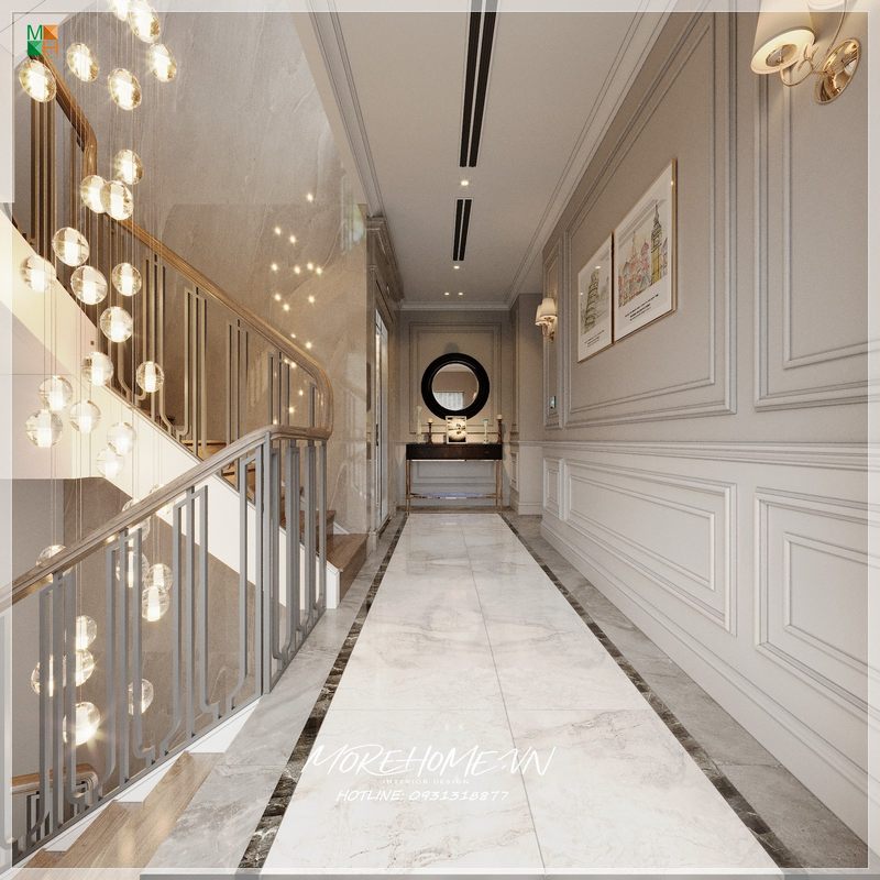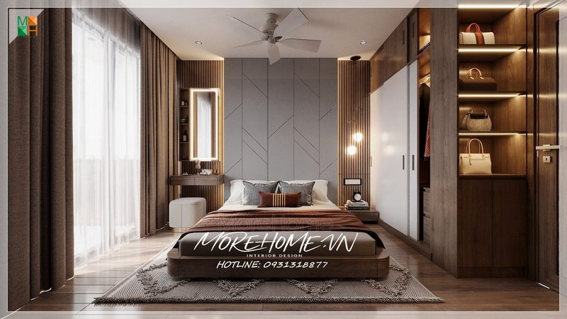 Gương trang điểm kết hợp trang trí tiện lợi trong phòng ngủ cao cấp mang phong cách tân cổ điển của nhà phố, biệt thự.