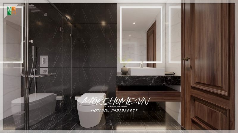 Kệ tủ lavabo treo tường gỗ công nghiệp mặt đá đen hiện đại được sử dụng nhiều trong không gian phòng tắm hỗ trợ đem đến sự tiện nghi nhất