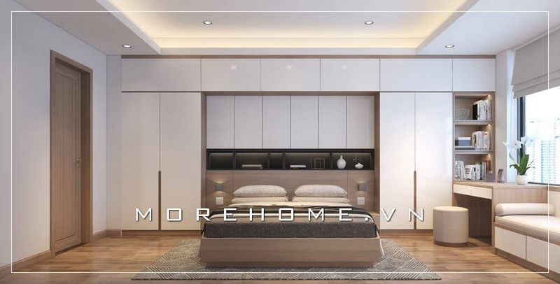 Thiết kế tủ áo cánh mở hiện đại kích trần tạo cho phòng ngủ thêm rộng và thoáng hơn