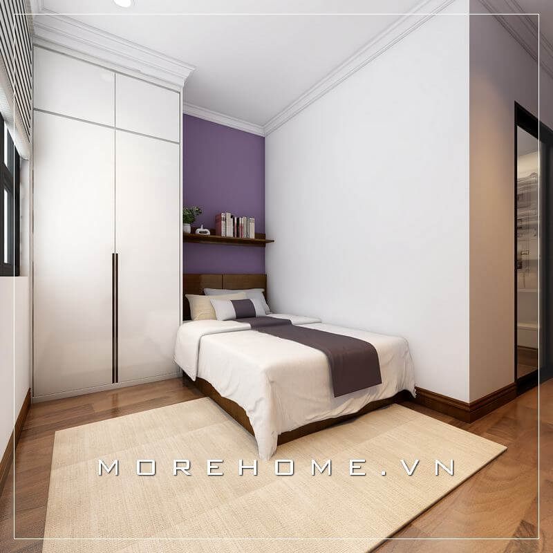 Tủ quần áo hiện đại cánh mở với gam màu trắng mang lại sự trẻ trung, tinh tế cho cả căn phòng