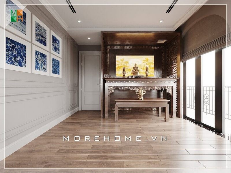 Bố trí nội thất phòng thờ đẹp, hiện đại.
