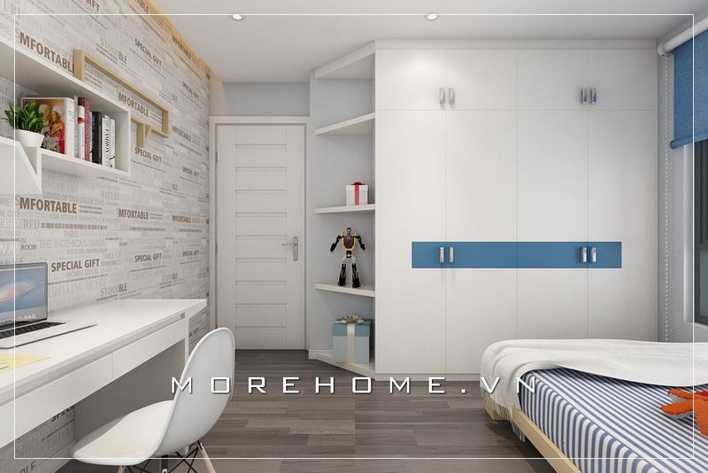 Tủ quần áo gỗ công nghiệp màu trắng vừa tiện dụng, vừa mang đến sự sang trọng cho cả căn phòng ngủ bé trai